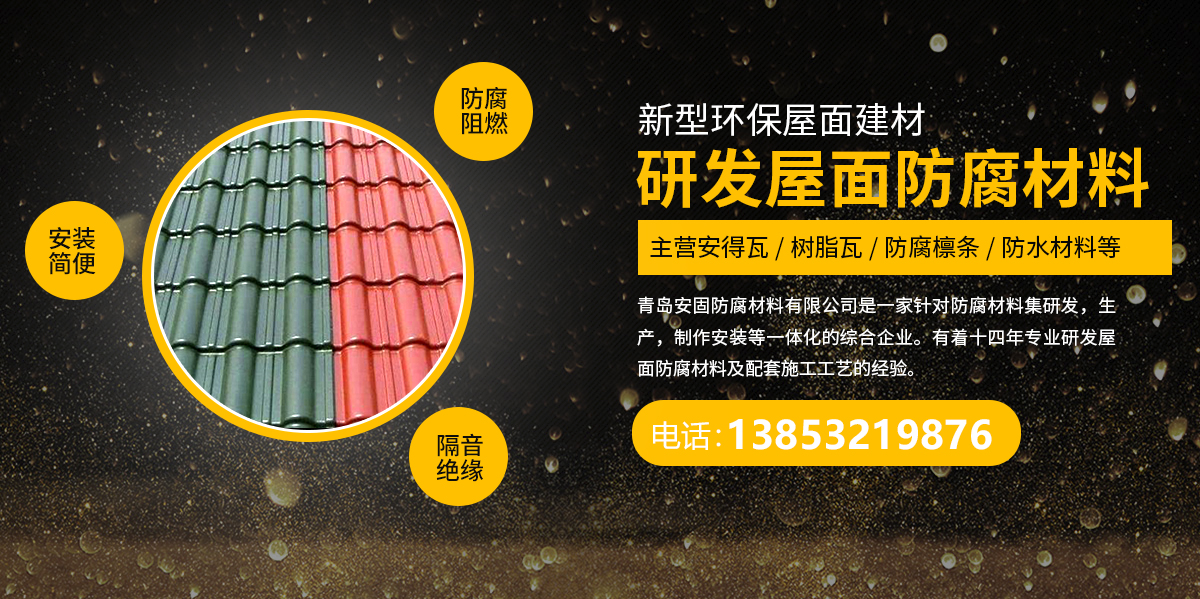 青島安固防腐材料有限公司是一家針對(duì)防腐材料集研發(fā),生產(chǎn),制作安裝等一體化的綜合企業(yè)。參股天津方興建材有限公司,湖北盛宇建材有限公司,沈陽(yáng)金方興建材有限公司。青島安固防腐材料有限公司有著十幾年專(zhuān)業(yè)研發(fā)屋面防腐材料及配套施工工藝的經(jīng)驗(yàn),自主研發(fā)的專(zhuān)利設(shè)備,擁有行業(yè)知名商標(biāo)“安得瓦”品牌。其中安得瓦,樹(shù)脂瓦,防腐檁條,防水材料等系列產(chǎn)品為化工、冶煉等需要防腐的工業(yè)建筑提供優(yōu)良產(chǎn)品服務(wù)。